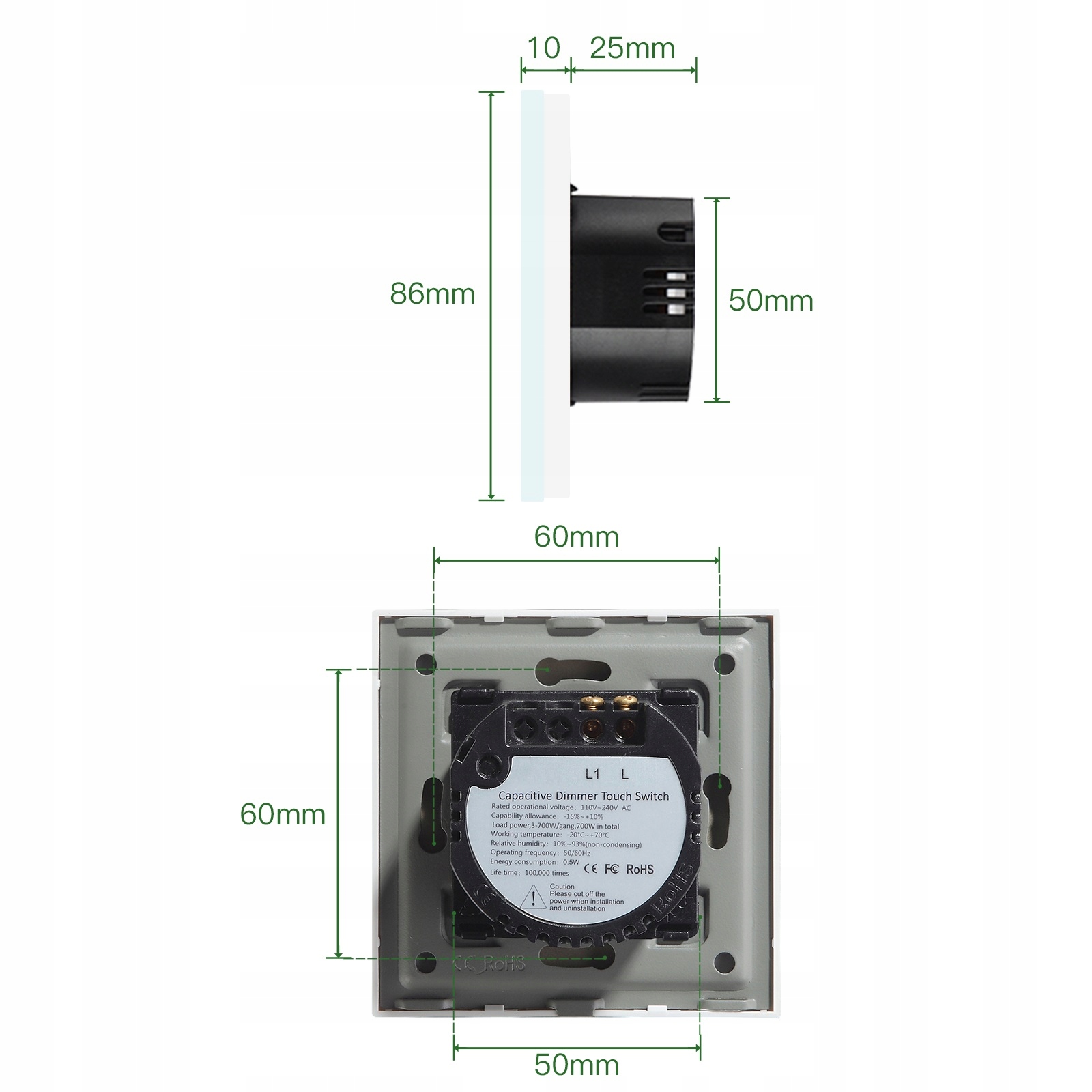 - Wymiary panelu przedniego:86mm*86mm*9mm