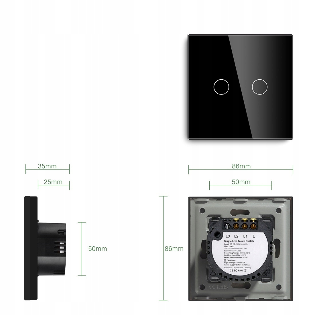 - Materiał z którego wykonany jest przełącznik: ABS / hartowane szkło