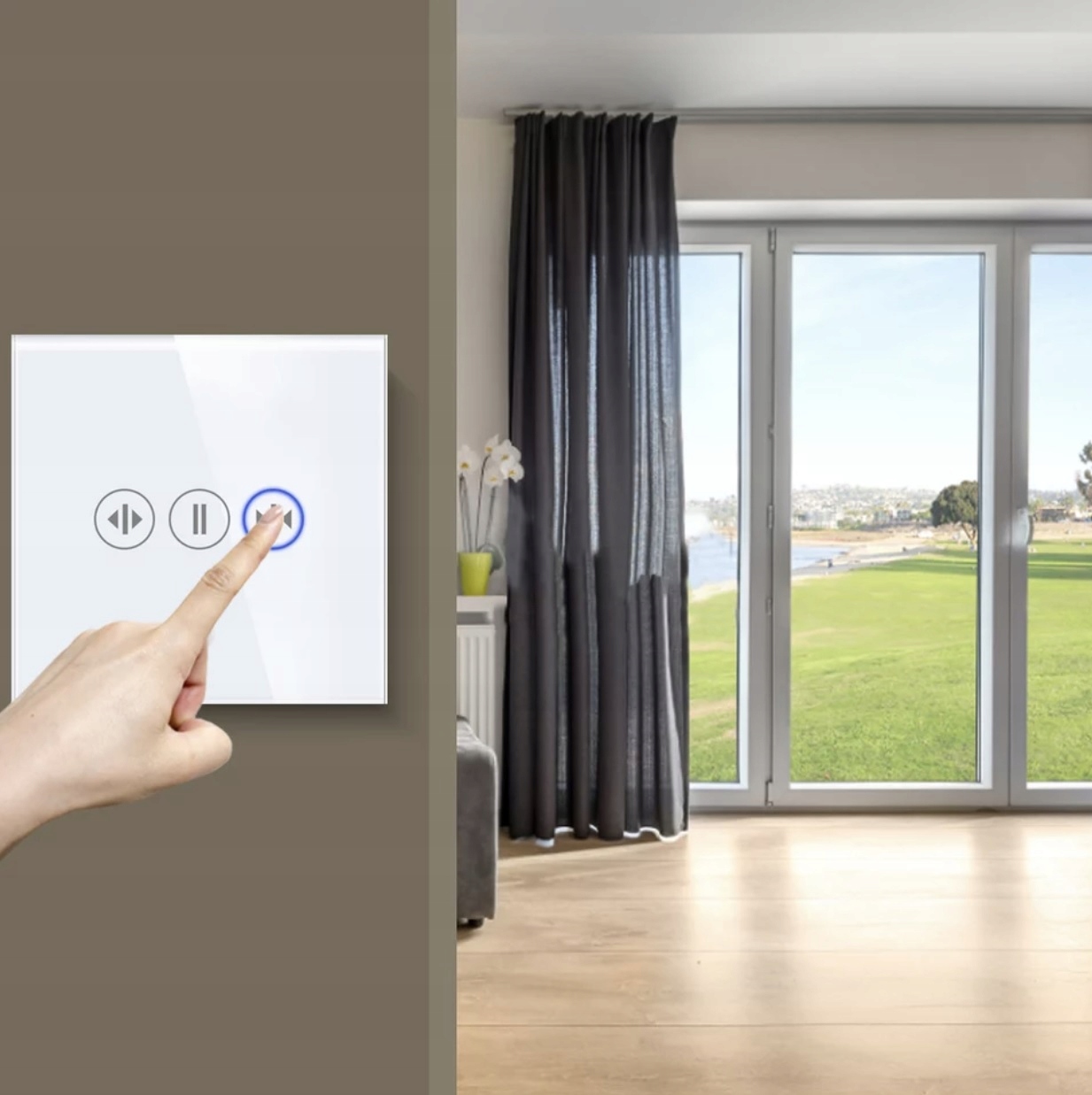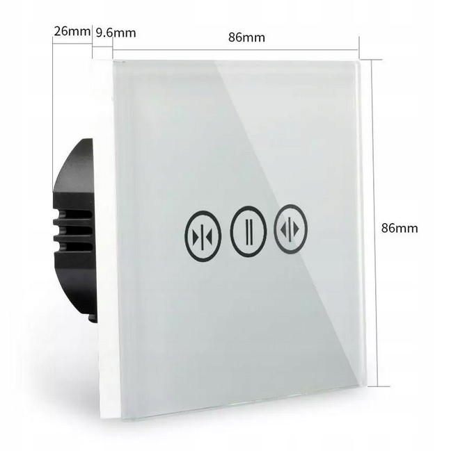 Oferowany przełącznik rolet to urządzenie proste i stylowe. Elegancki panel przedni wykonany z hartowanego szkła o grubości 4mm dzięki czemu jest jest bardzo trwały.