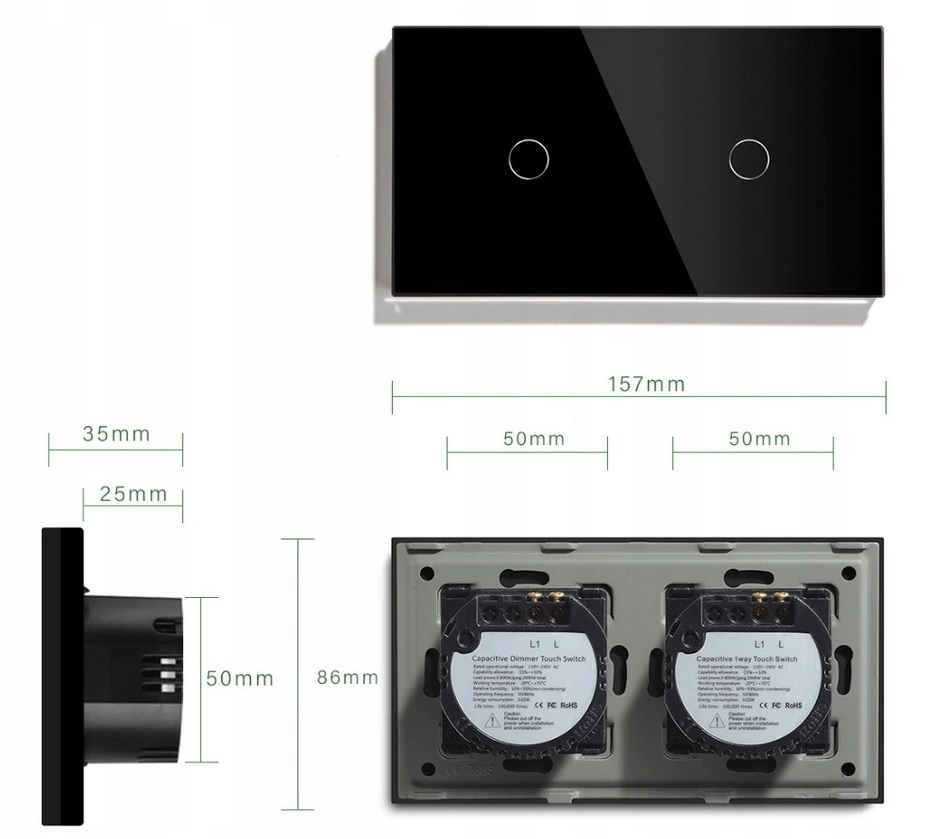 - Materiał z którego wykonany jest przełącznik: ABS / hartowane szkło