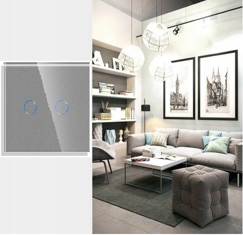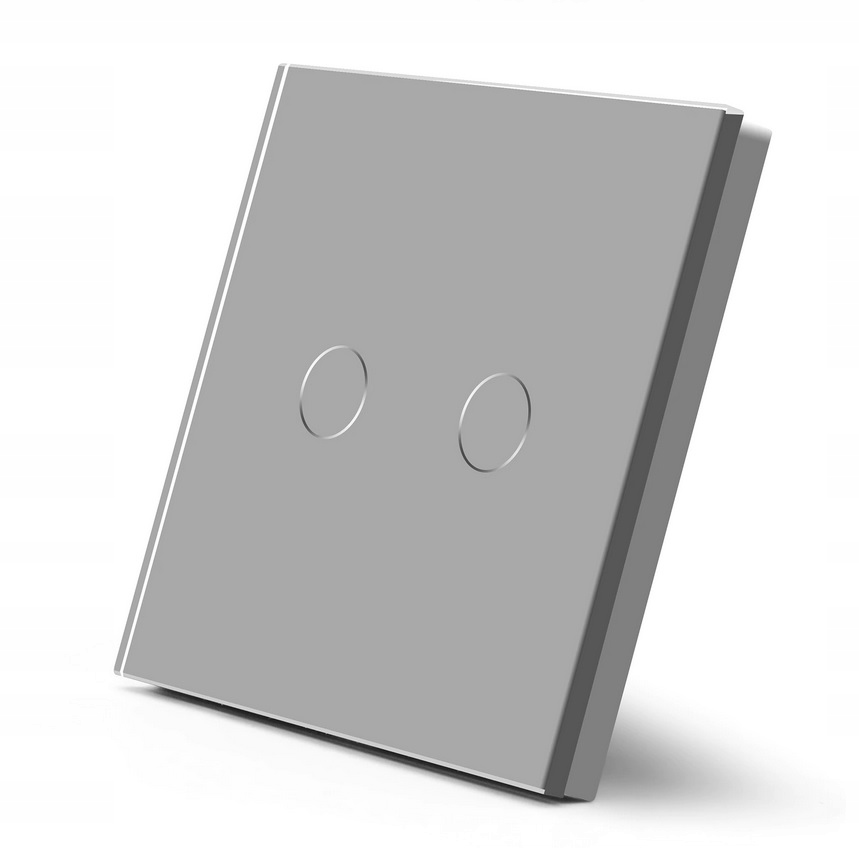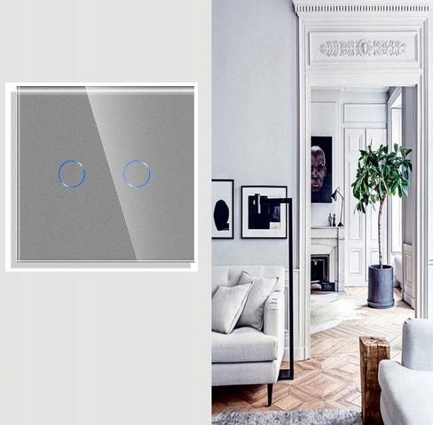 DOTYKOWY WŁĄCZNIK ŚWIATŁA PODWÓJNY 2K WIFI TUYA SMART LIFE SZARY SZKLANY