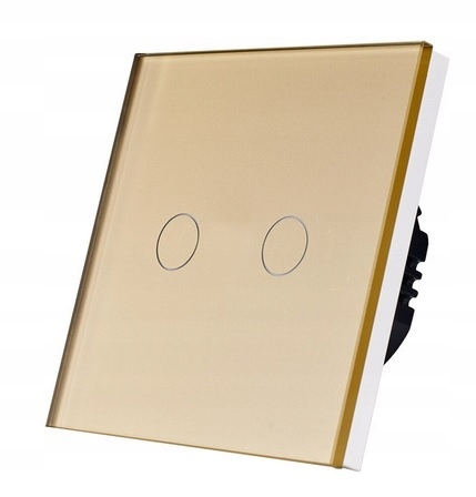 Aukcja dotyczy włącznika podwójnego w kolorze złotym z funkcją WiFi