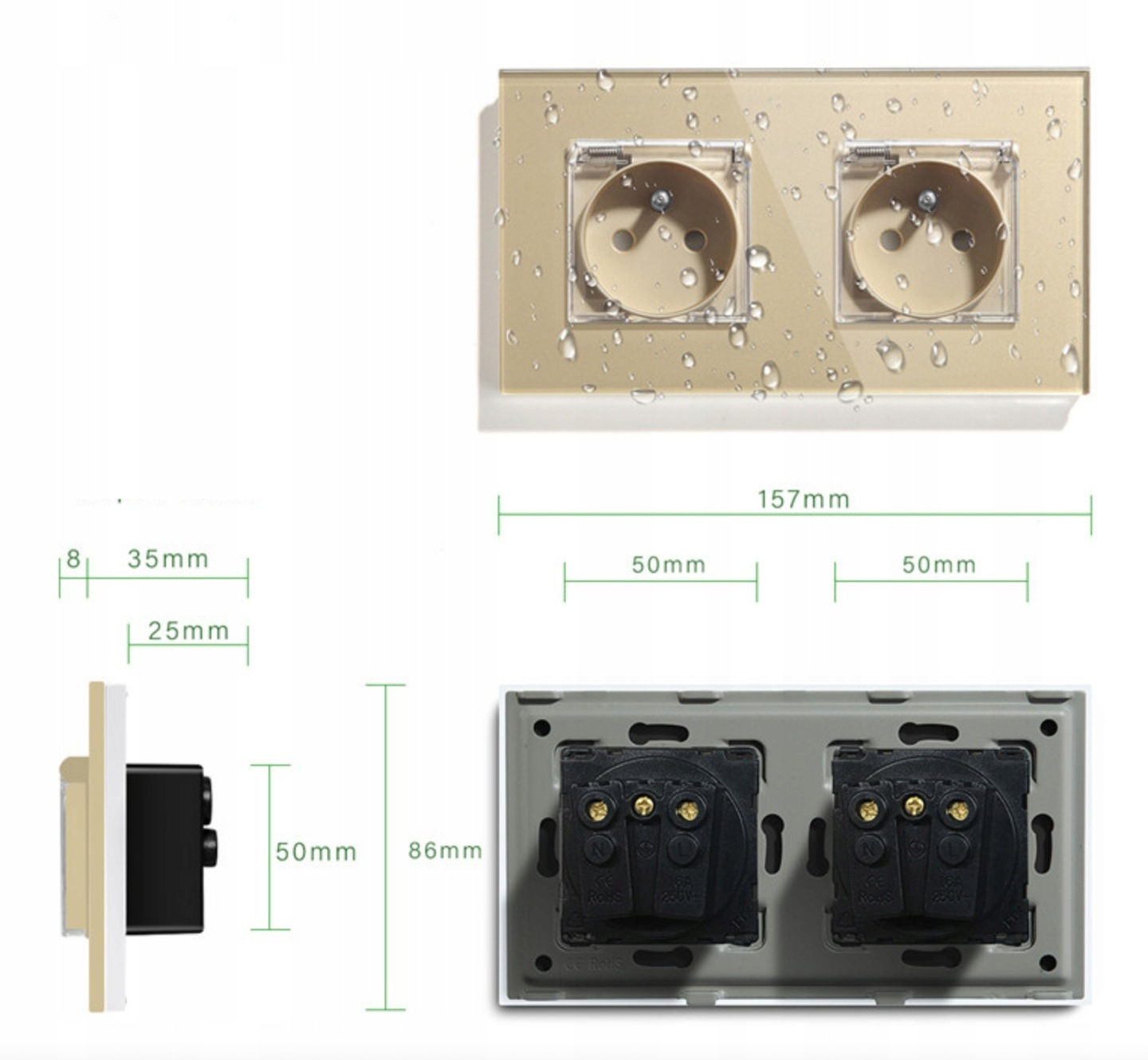 Gniazdko podwójne hermetyczne IP44 ze szklaną ramką – eleganckie i bezpieczne