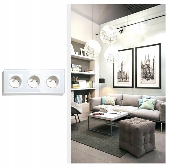 GNIAZDKO ELEKTRYCZNE SZKLANE POTRÓJNE KONTAKT 16A GNIAZDO 230V RAMKA 228mm