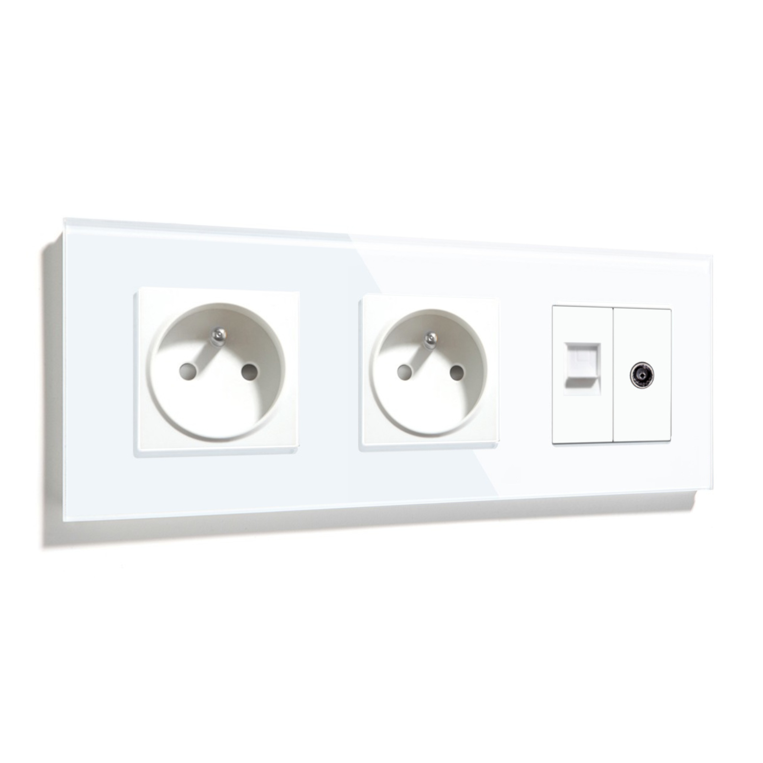 Eleganckie i niezwykle funkcjonalne potrójne gniazdko elektryczne ze szklanym frontem to kompleksowe rozwiązanie łączące zasilanie z transmisją danych. Dzięki wbudowanym modułom TV i internet w jednej stylowej ramce, zapewnia wygodę podłączenia dwóch urządzeń elektrycznych jednocześnie oraz bezpośredni dostęp do sygnału telewizyjnego i sieciowego, eliminując potrzebę stosowania nieestetycznych przedłużaczy i dodatkowych instalacji.