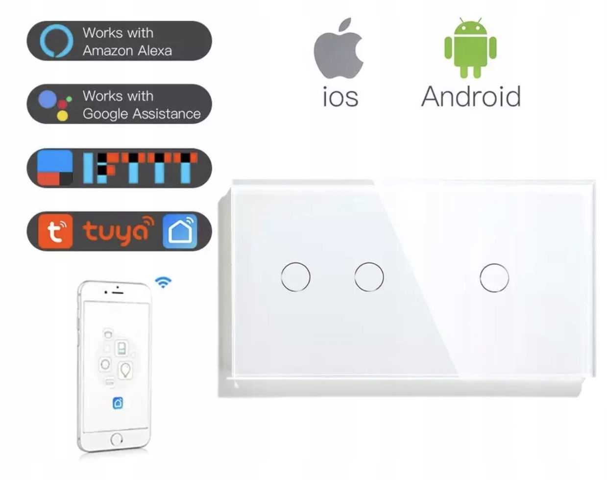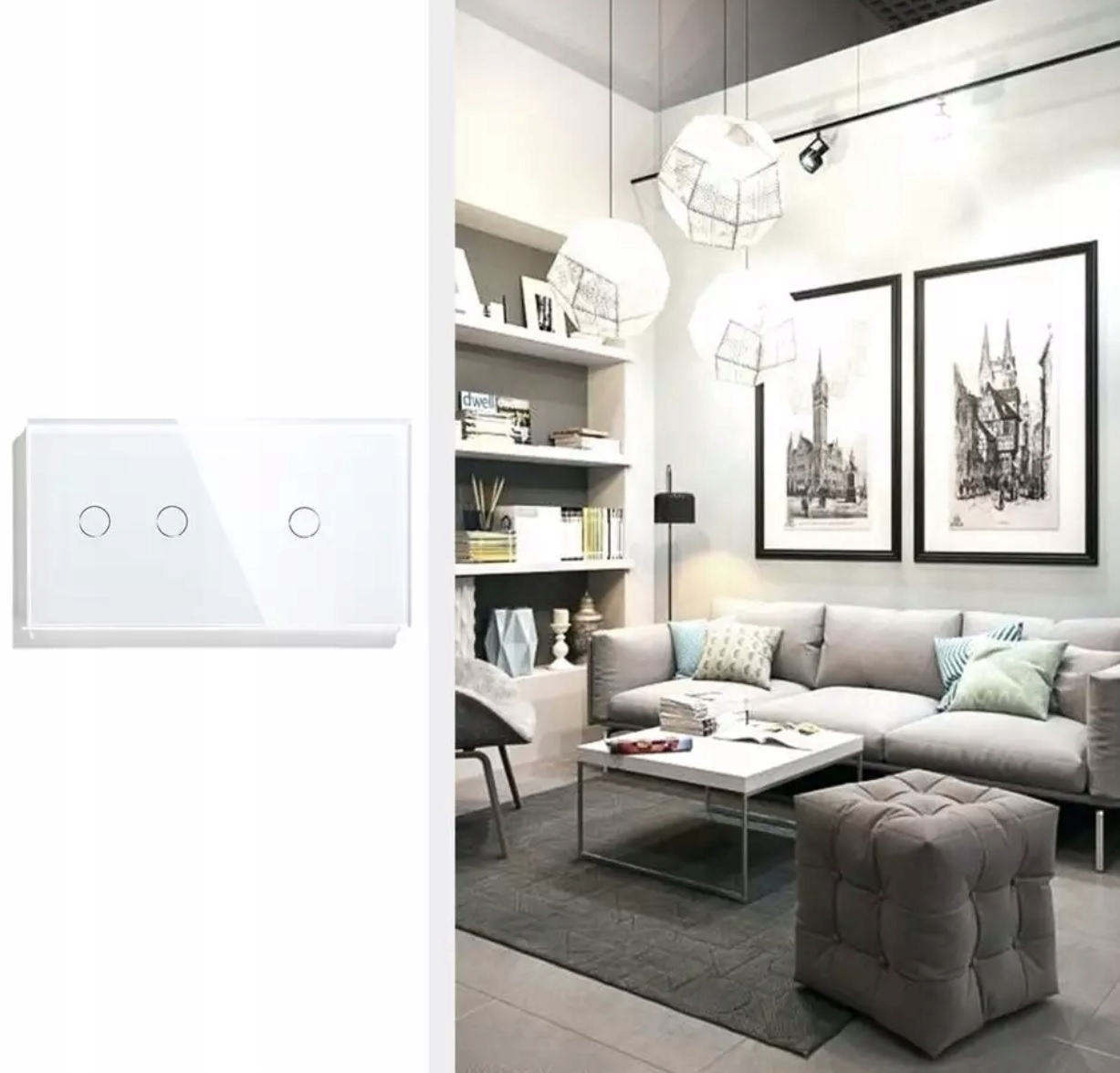 INTELIGENTNY DOTYKOWY WŁĄCZNIK ŚWIATŁA 2+1 POTRÓJNY 3K WIFI TUYA SMART LIFE