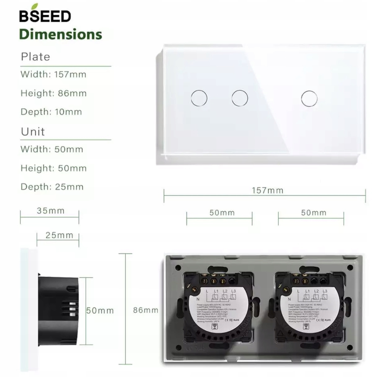 Produkt wysokiej jakości, renomowanej firmy BSEED. Panel przedni cały w kolorze białym. Metalowa ramka łączy wszystkie elementy w całość co potwierdza jakość wykorzystanych elementów konstrukcji włącznika.