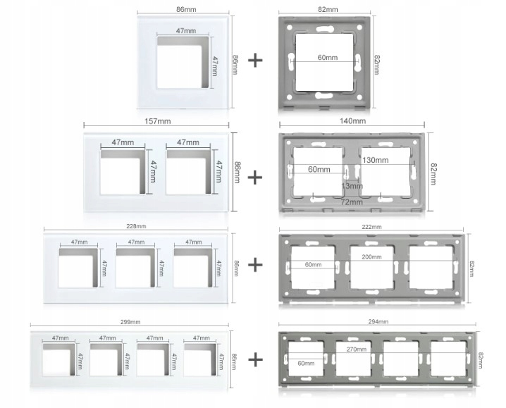 Moduł włącznika można montować w ramkach o różnej wielkości – od pojedynczej aż do pięciopunktowej. Ta elastyczność pozwala na tworzenie zarówno prostych, jak i rozbudowanych zestawów instalacji elektrycznej, idealnie dopasowanych do indywidualnych potrzeb.