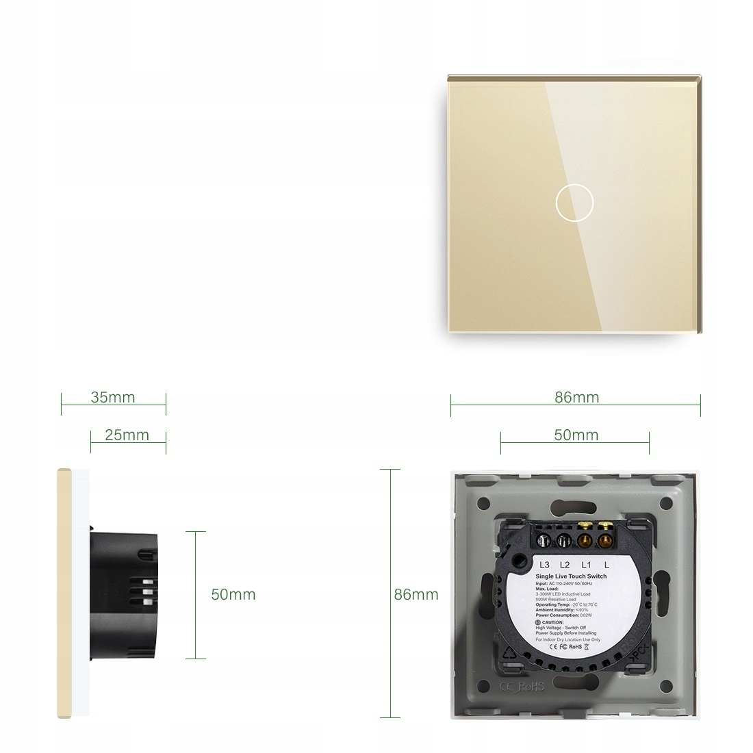 - Materiał z którego wykonany jest przełącznik: ABS / hartowane szkło