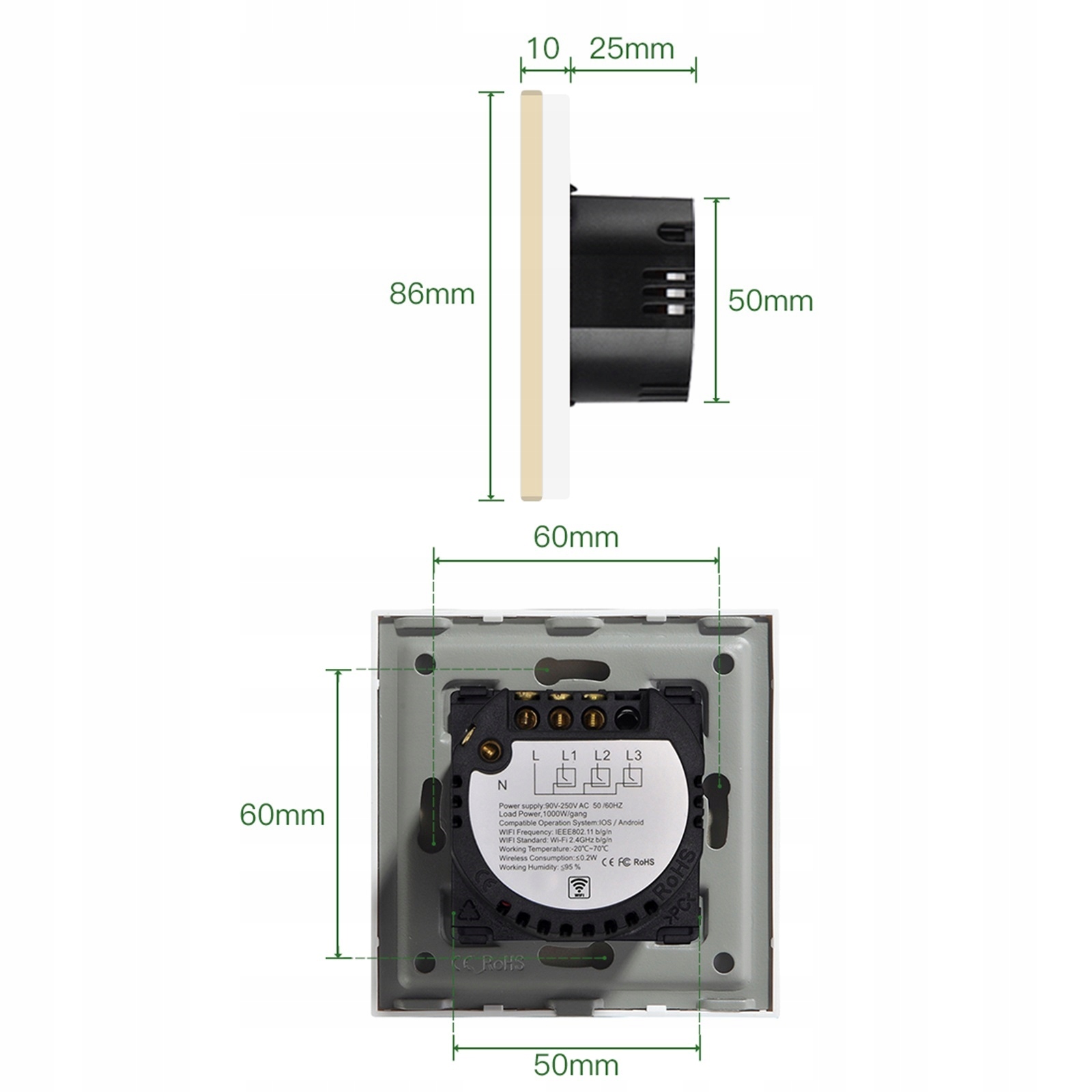- Wymiary panelu przedniego: 86mm*86mm*9mm
