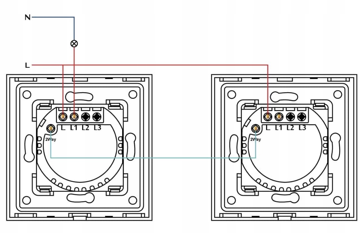 W celu utworzenia układu schodowego należy połączyć ich zaciski oznaczone jako TWO-WAY dedykowanym przewodem łączącym.
