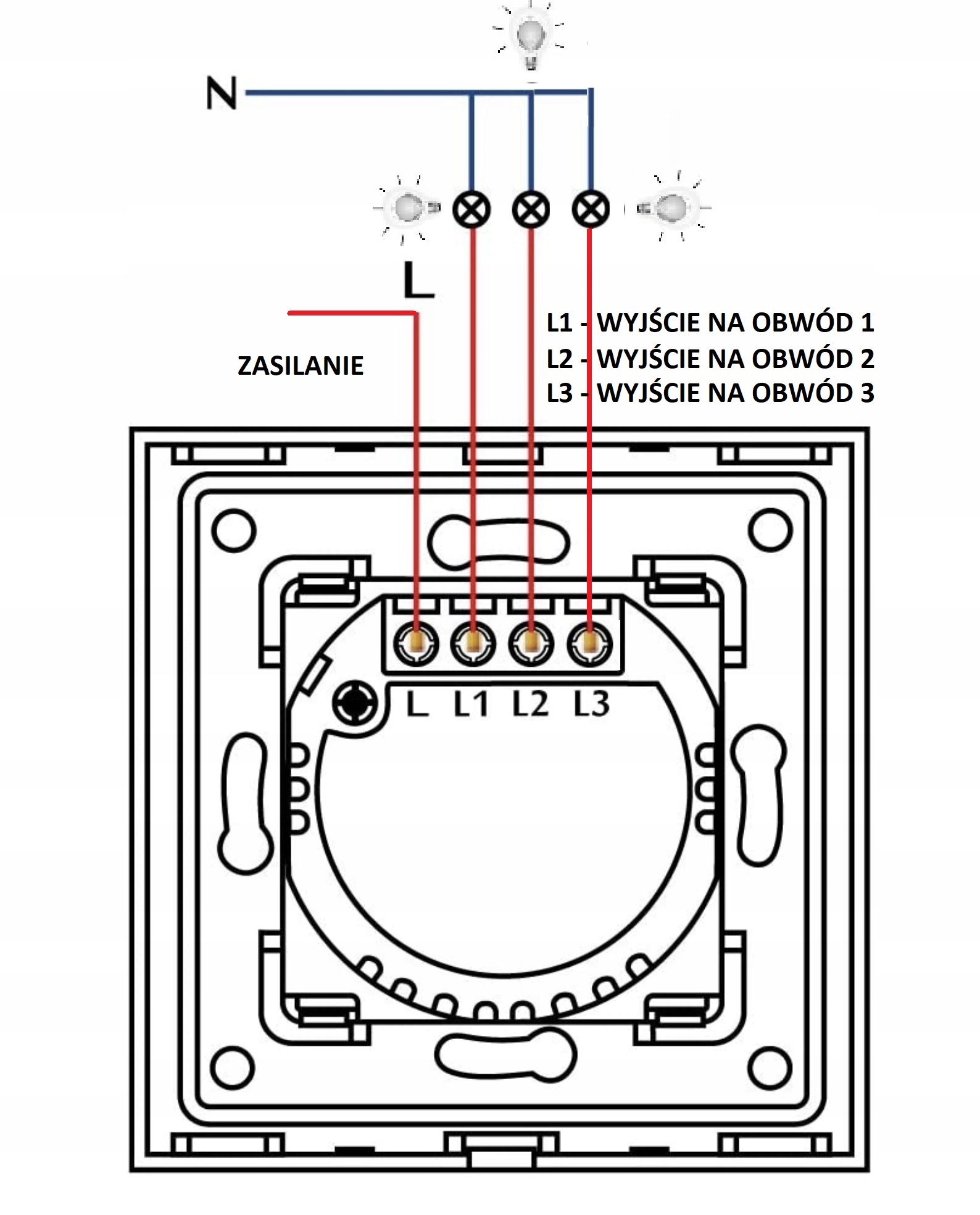 - Montaż za pomocą wkrętów do standardowej puszki elektrycznej 60mm