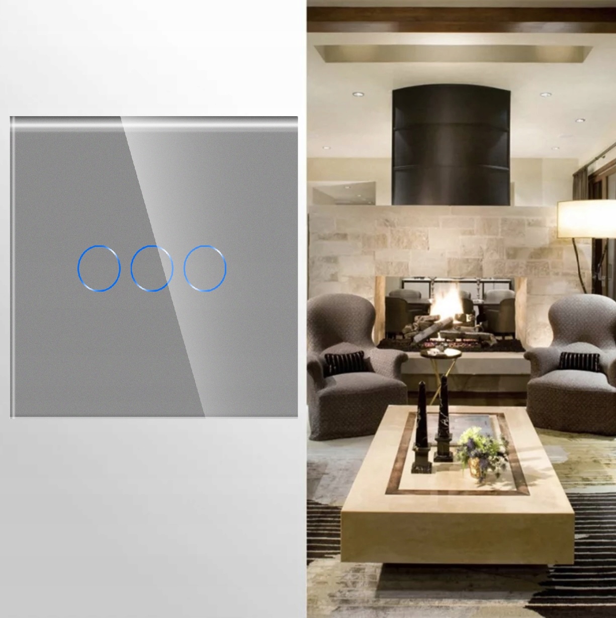 DOTYKOWY WŁĄCZNIK ŚWIATŁA 3K POTRÓJNY WYŁĄCZNIK SZKLANY PODŚWIETLENIE LED