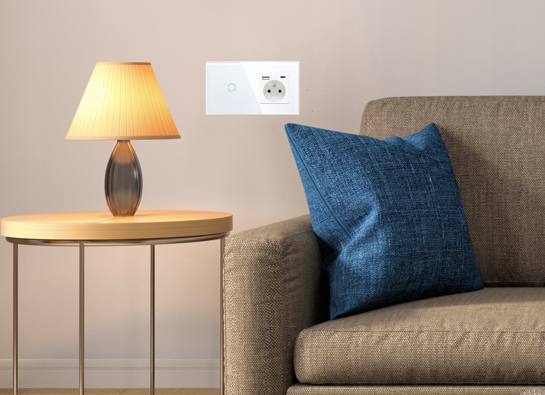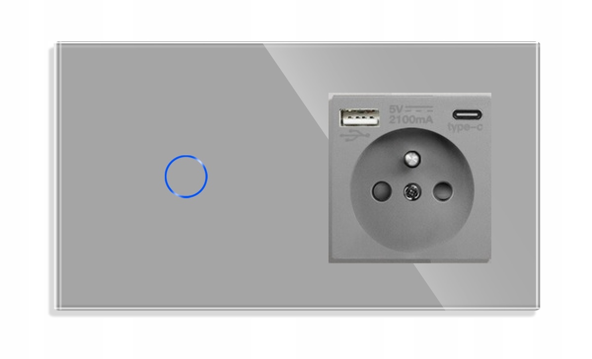 WŁĄCZNIK DOTYKOWY POJEDYNCZY 1K Z GNIAZDKIEM USB-C QC 20W WYŁĄCZNIK SZKLANY