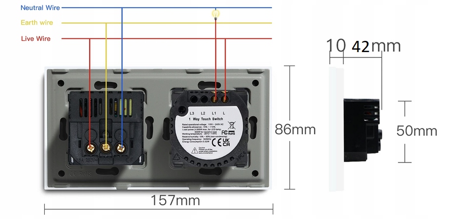 Oferowany dotykowy włącznik światła z gniazdkiem elektrycznym to urządzenie proste i stylowe. Elegancki panel przedni wykonany z hartowanego szkła o grubości 4mm dzięki czemu jest jest bardzo trwały.