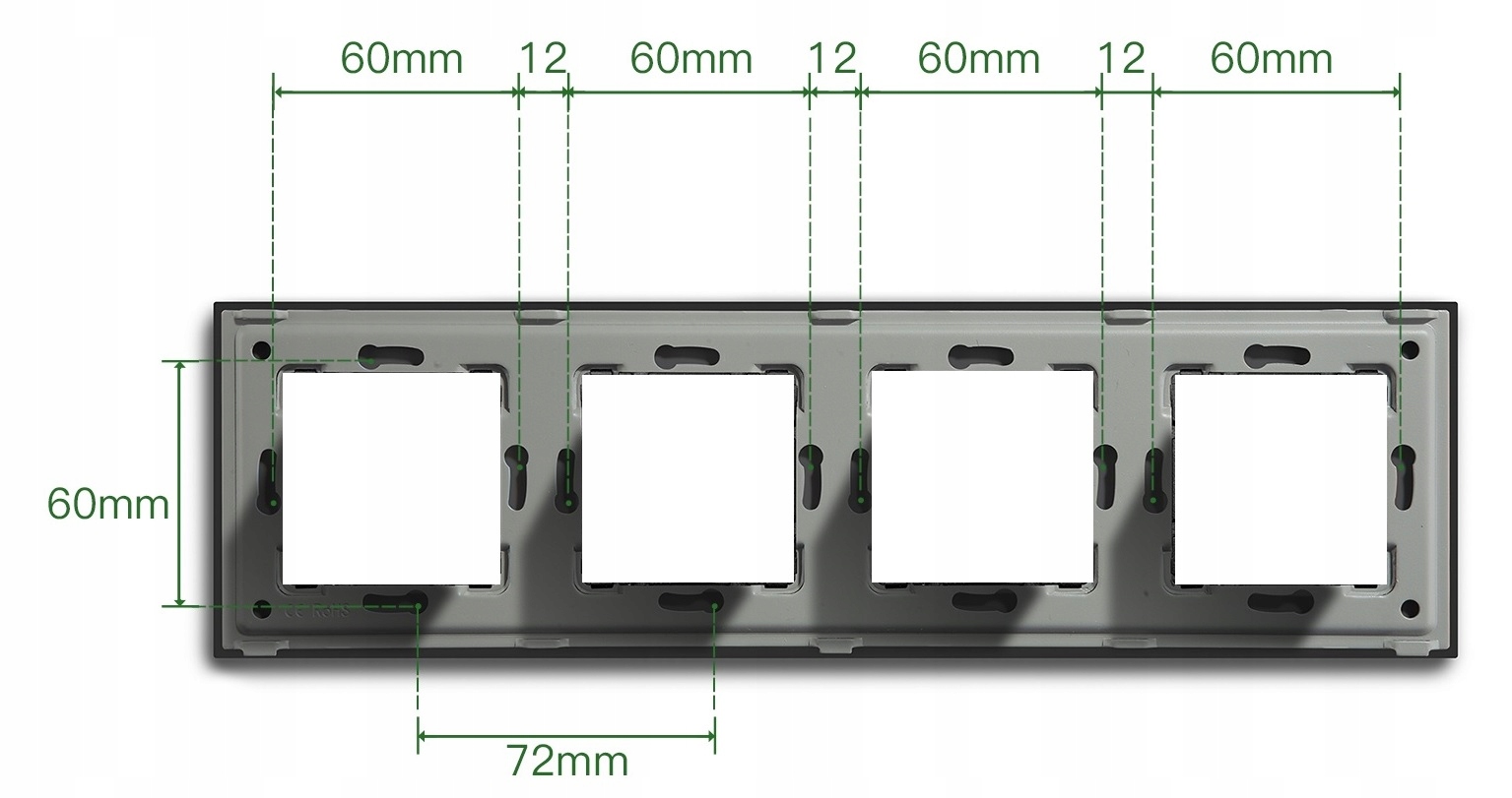 - Montaż za pomocą śrub do standardowej poczwórnej puszki elektrycznej 60mm