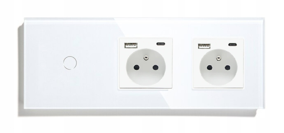 WŁĄCZNIK DOTYKOWY POJEDYNCZY+2GNIAZKDA USB-C SZKŁO